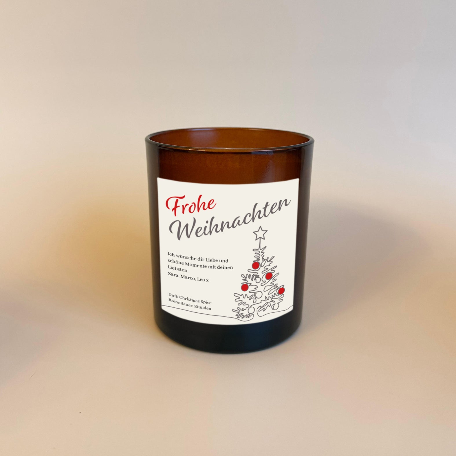 Wähle zwischen zwei bezaubernden Festdüften: Christmas im Amberglas oder Winter Alps im weißen Glas. Du kannst auch dein Etikett auf Deutsch oder Englisch personalisieren – das perfekte, durchdachte und individuelle Geschenk.
