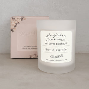 Gestalten Sie das Etikett individuell, um ein bedeutungsvolles Geschenk zu kreieren, das für immer in Erinnerung bleibt. Ob als liebevolle Aufmerksamkeit für das Brautpaar oder als besonderes Andenken für Ihren eigenen großen Tag – diese Kerze verleiht jeder Feier eine persönliche und herzliche Note.