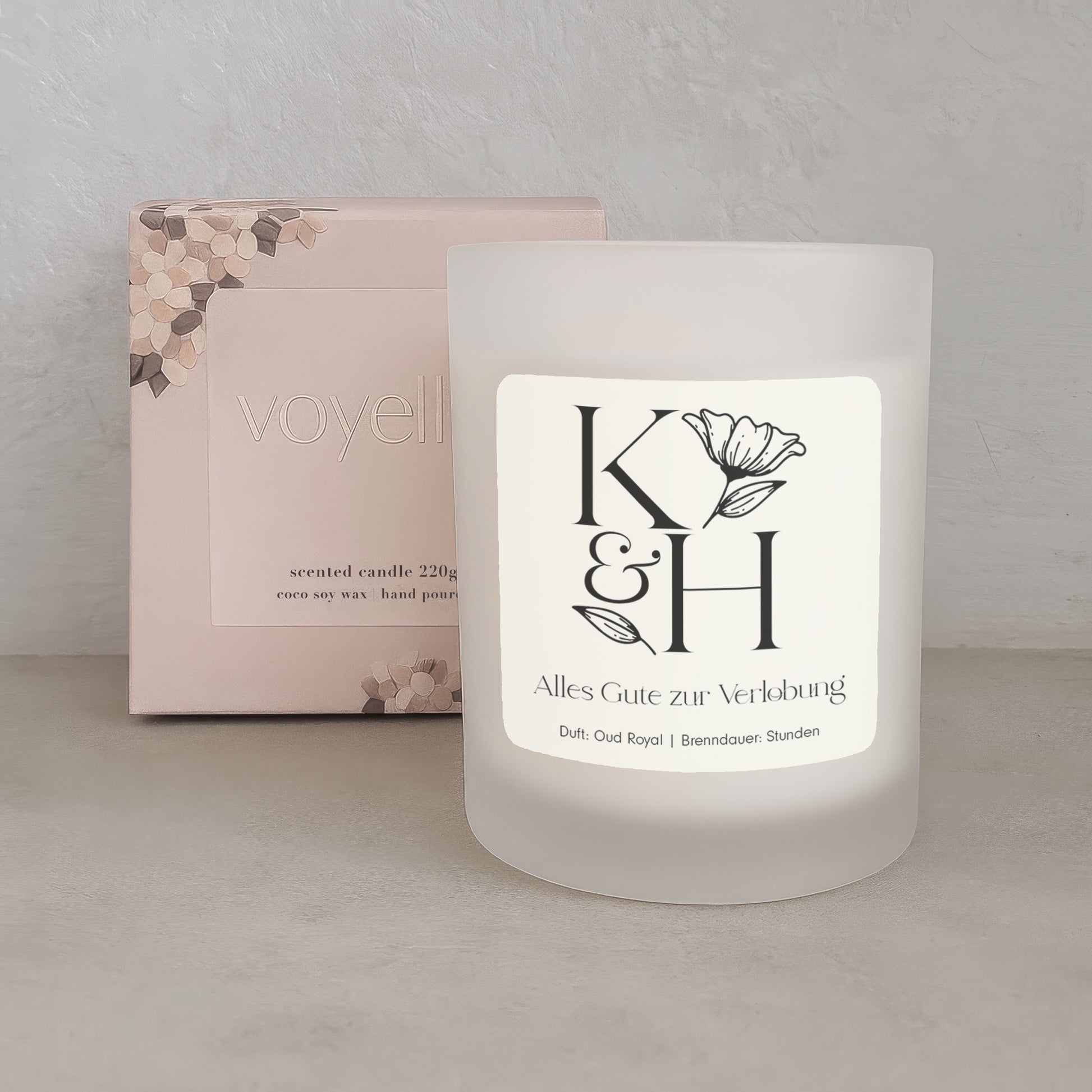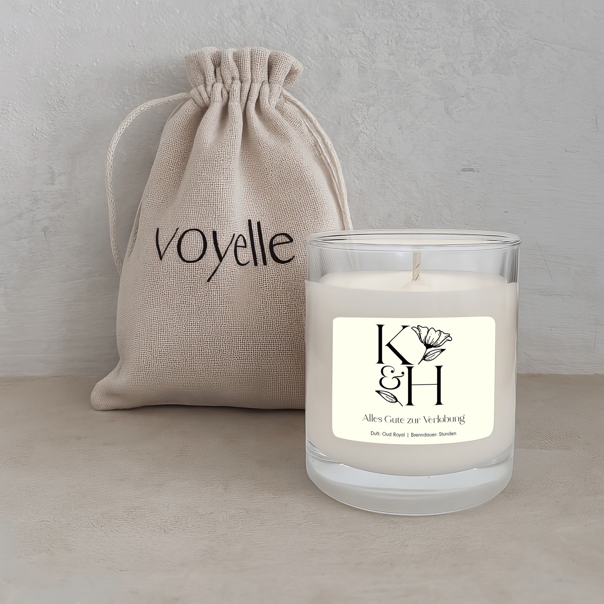Gestalten Sie das minimalistische Etikett mit den Anfangsbuchstaben des Paares, um ein einzigartiges Erinnerungsstück zu schaffen. Ob als Geschenk für das frisch verlobte Paar oder zur Erinnerung an Ihren eigenen besonderen Moment – diese Kerze ist ein bleibendes Symbol für Liebe und Feierlichkeit.