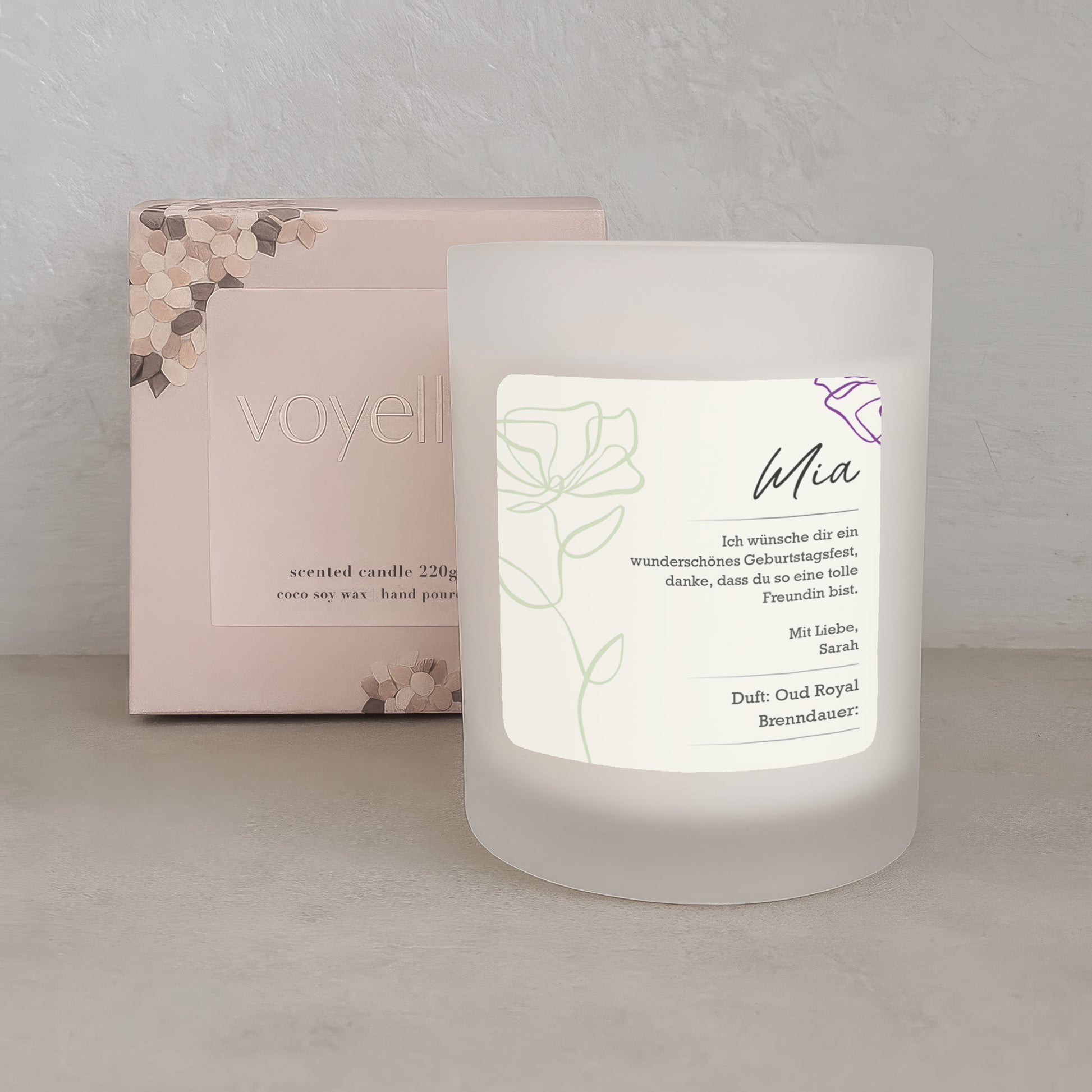 Machen Sie Geburtstage unvergesslich mit einer personalisierten Blumenkerze – so einzigartig wie das Geburtstagskind selbst. Von Hand gegossen aus natürlichem, ungiftigem Coco-Sojawachs und hochwertigen ätherischen Ölen, für ein sauberes und luxuriöses Brennen.