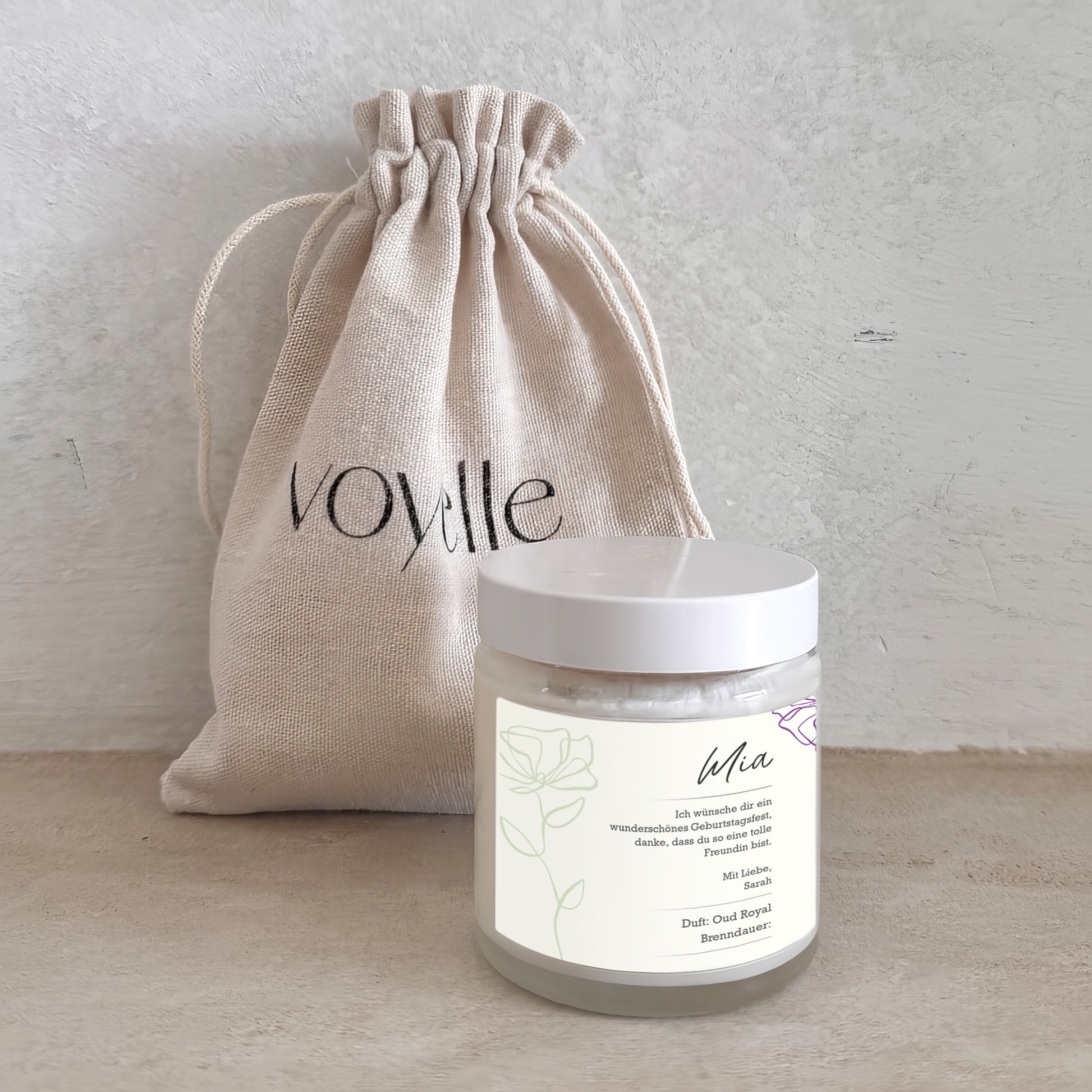 • 180 ml & 280 ml Kerzen werden in einer edlen, gebrandeten Voyelle-Geschenkbox präsentiert