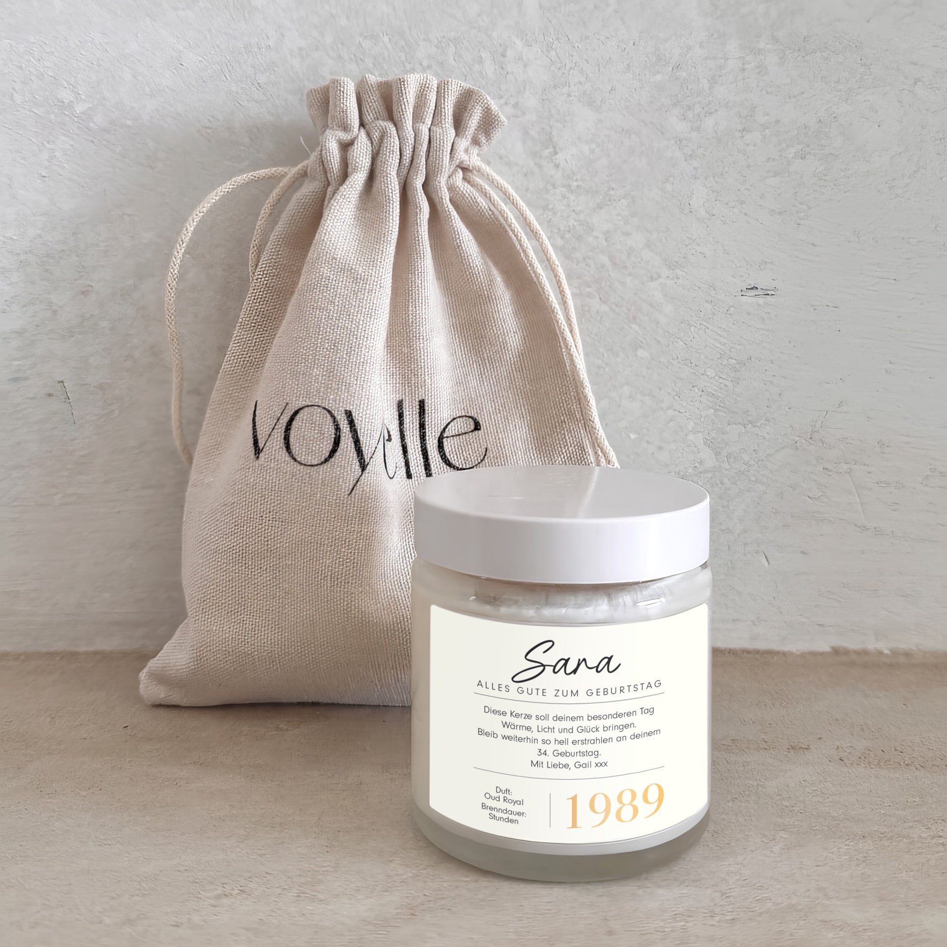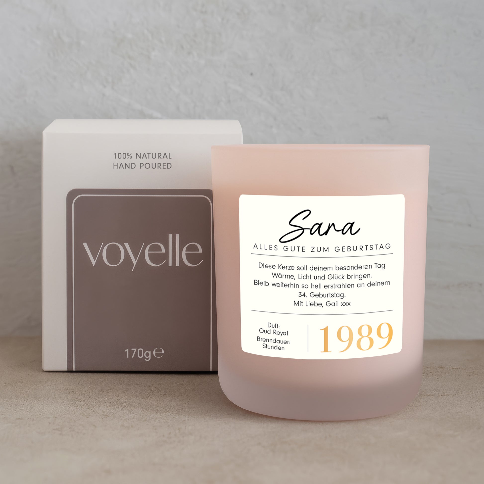 Feiern Sie einen besonderen Geburtstag mit einem wirklich bedeutungsvollen Geschenk. Unsere personalisierten Geburtstagskerzen werden in kleinen Chargen von Hand gegossen – mit natürlichem, ungiftigem Kokos-Sojawachs und hochwertigen ätherischen Ölen. Das Ergebnis: ein sauberer, luxuriöser Abbrand. Wählen Sie aus unseren charakteristischen Düften, passen Sie das Etikett mit Namen und Geburtsjahr der beschenkten Person an – ein Erinnerungsstück, das noch lange nach der Feier geschätzt wird.