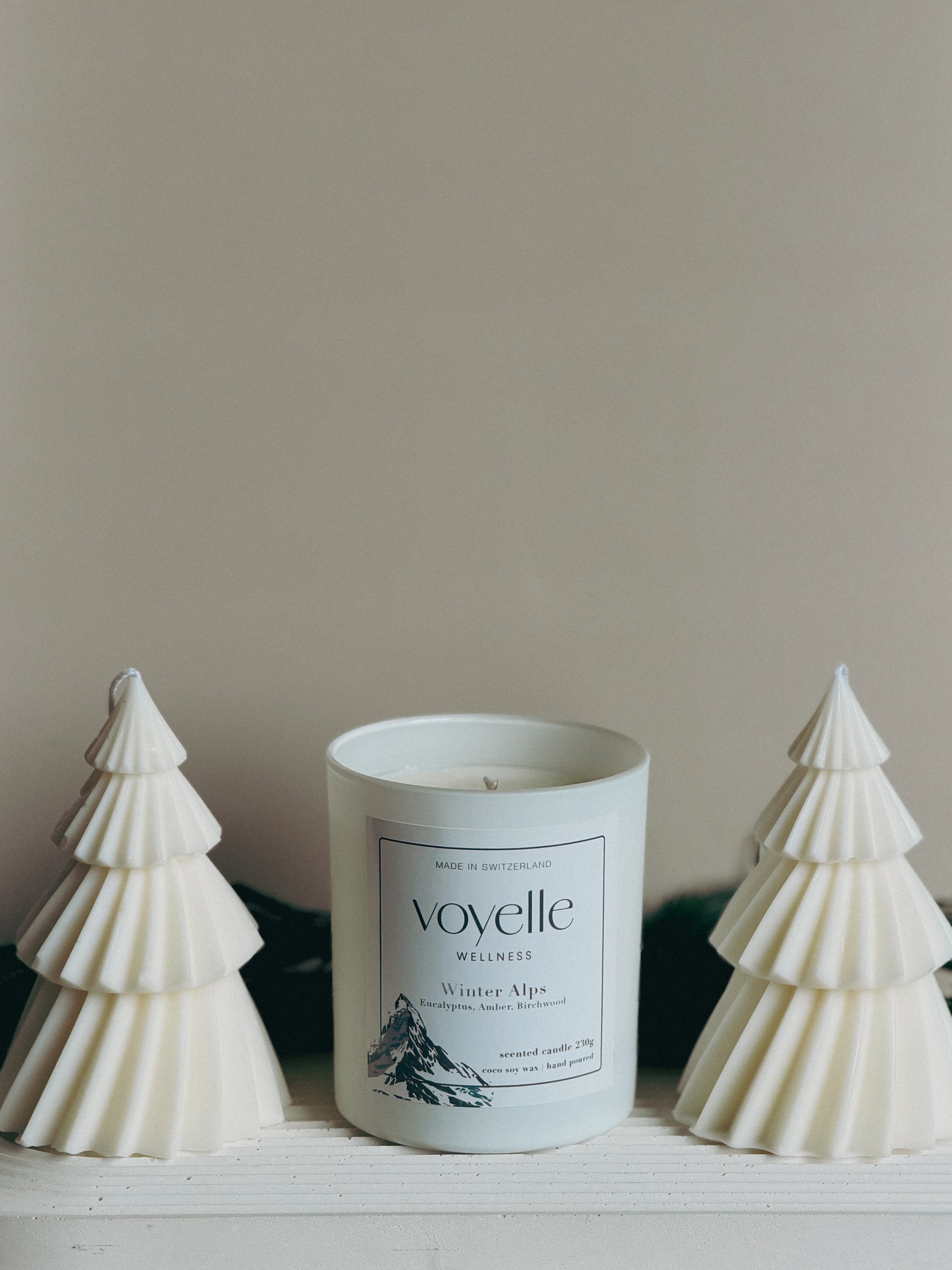 Winterliche Ruhe: Genieße die friedvolle Winterstimmung mit Winter Alps – eine natürliche Kerze mit Eukalyptus, Amber und Birkenholz für einen klaren, holzigen Duft. Perfekt für gemütliche Abende und frostige Morgen.